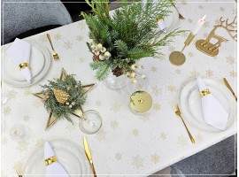 Elegancki świąteczny obrus, bieżnik lub serwetka w złote płatki śniegu.