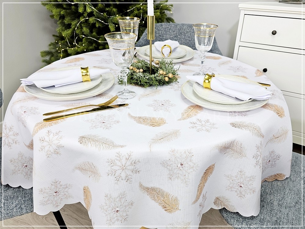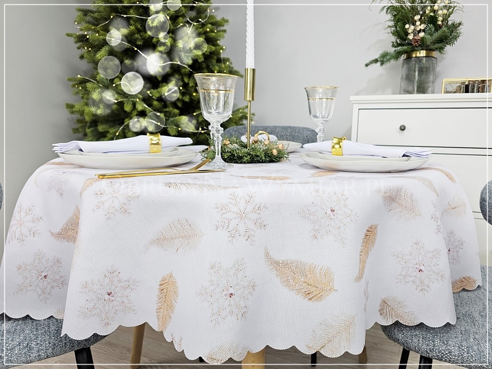 Całość przedstawiona jest w biało-beżowej kolorystyce przez co obrus idealnie wkomponowuje się w każdy styl, zarówno glamour, klasyczny, nowoczesny, czy skandynawski.