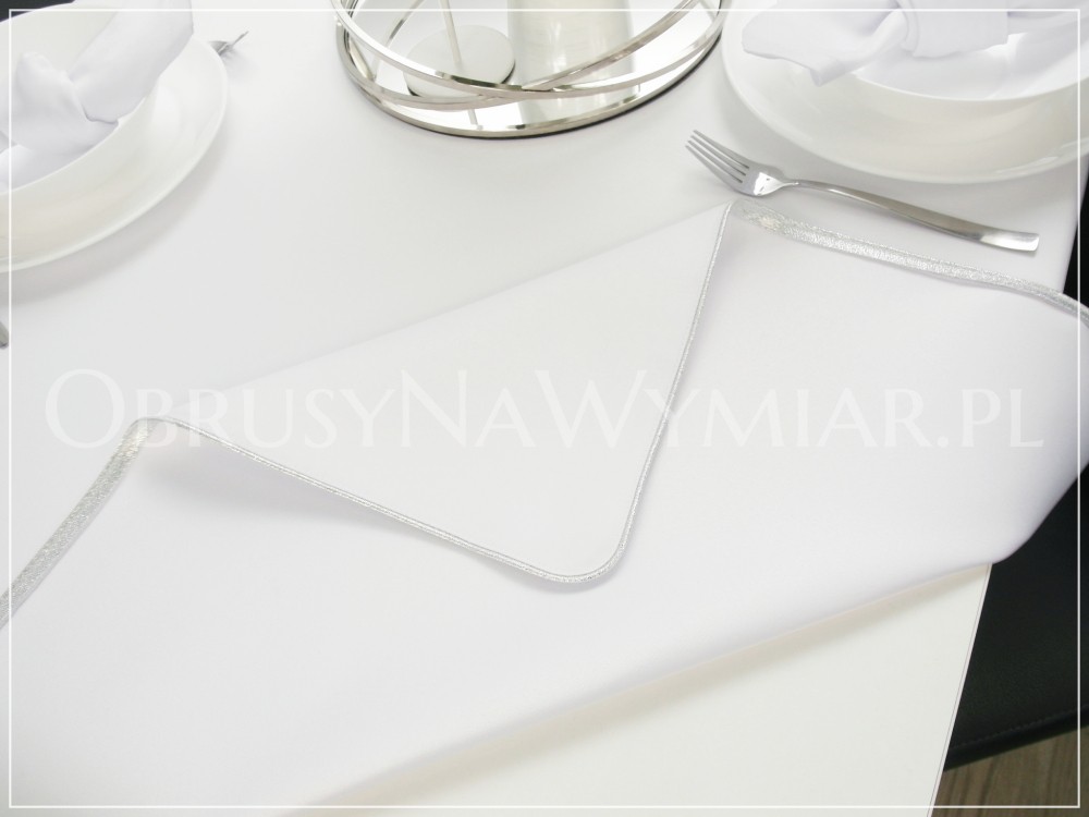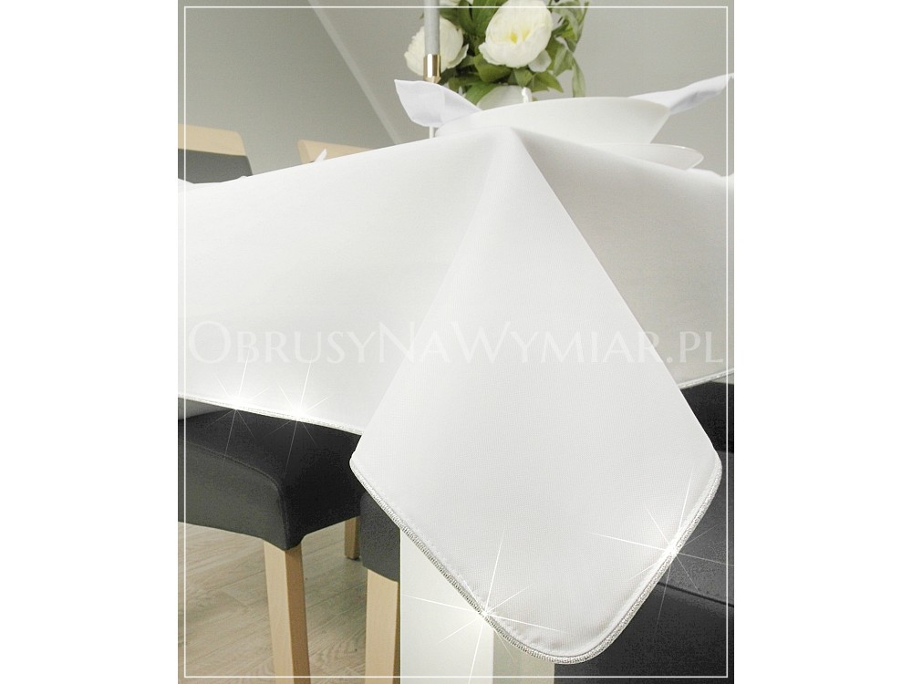 Wyjątkowość obrusów ELITE PREMIUM polega na ich nietuzinkowym wykończeniu poprzez dekoracyjną wypustkę w białym, złotym, srebrnym lub innym kolorze do wyboru.