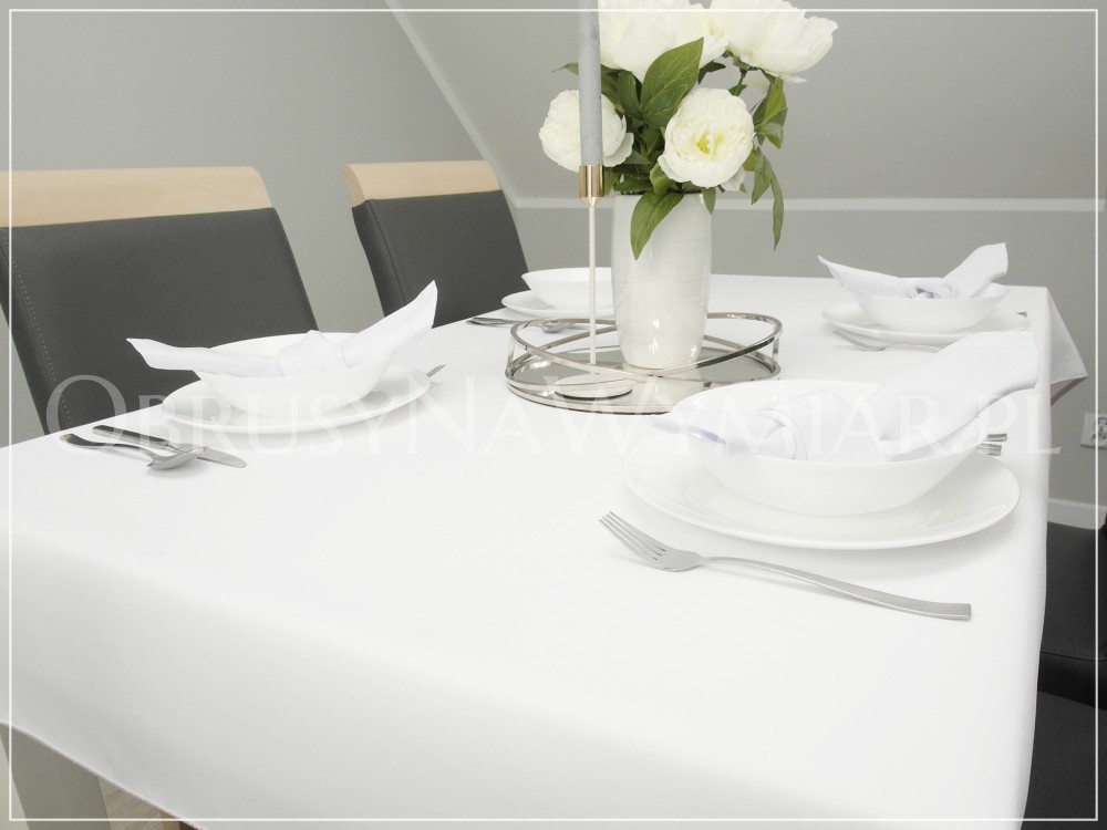 Maksymalna szerokość obrusu ELITE PREMIUM w kolorze białym to 265cm.