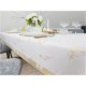 Złoty wzór, mankiet i lewa strona obrusy pięknie się błyszczy dzięki metalizowanej nici w składzie.