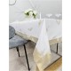 Złote wykończenie obrusu, czyli tzw. mankietem uszyty jest poprzez wywinięcie tkaniny.