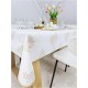 Elegancki wielkanocny obrus z pięknym wykończeniem w formie ozdobnej lamówki.