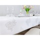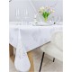 Elegancki wielkanocny obrus z pięknym wykończeniem w formie ozdobnej lamówki.