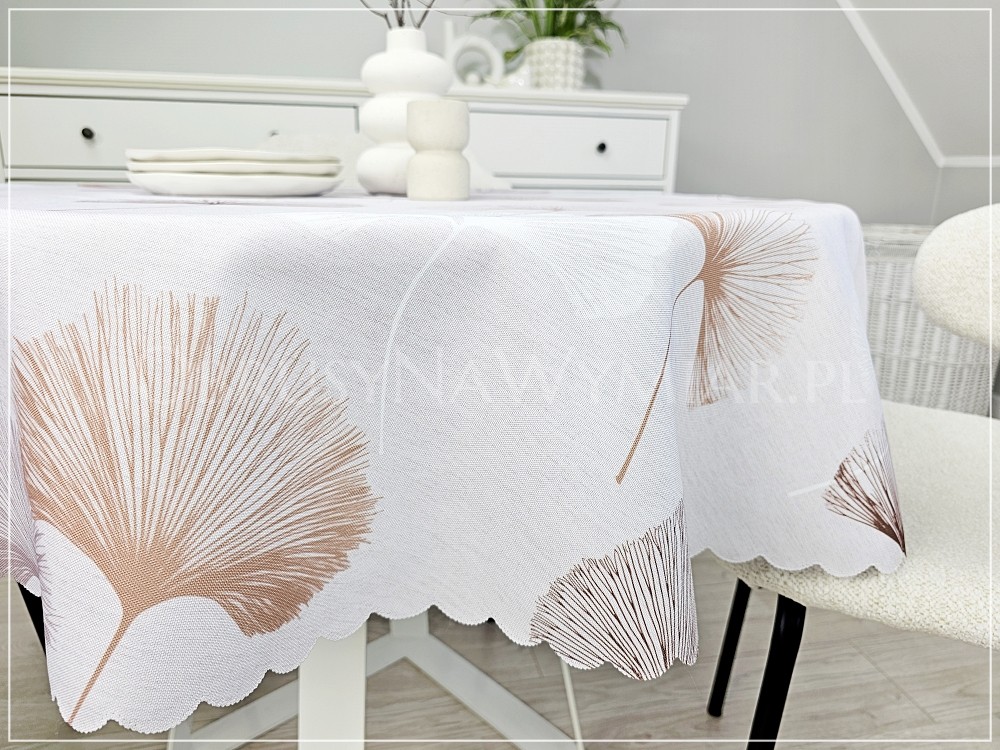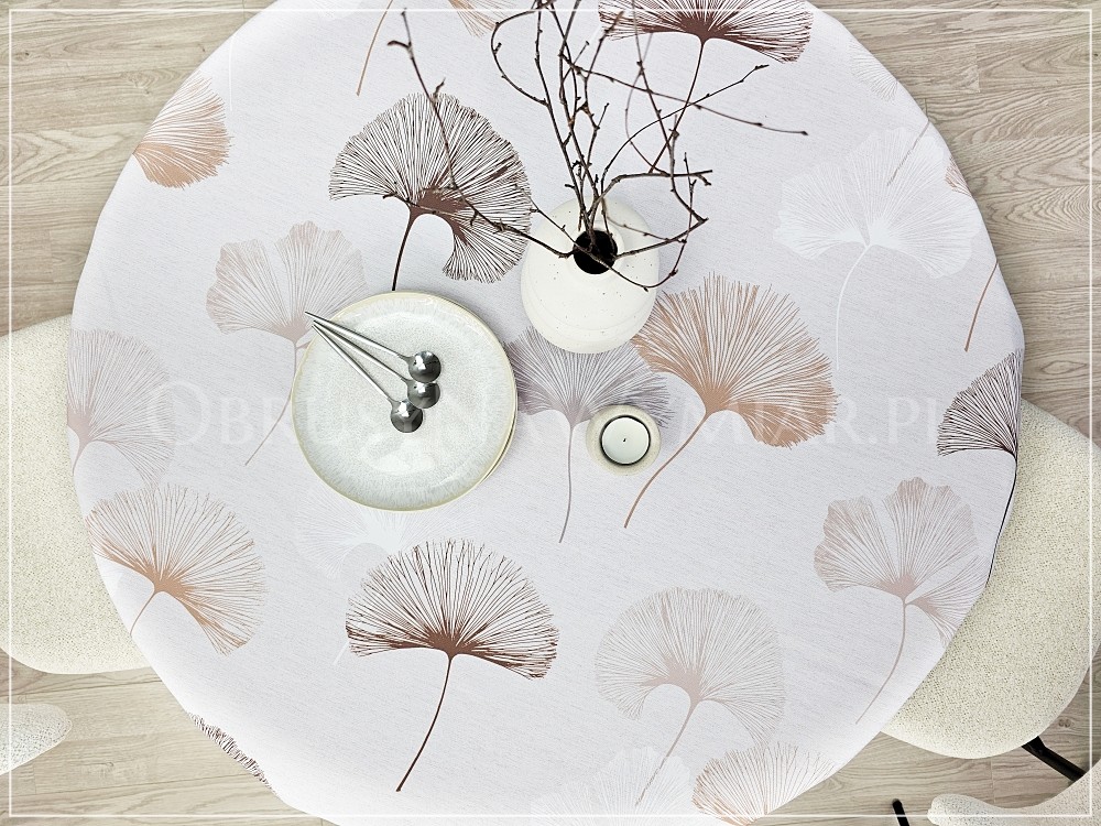 Obrus Ginkgo Elegance to doskonały wybór dla osób ceniących elegancję i styl w aranżacji wnętrz. Jego subtelny wzór inspirowany naturą, przedstawiający delikatne liście miłorzębu, sprawia, że stół zyskuje wyjątkowy, dekoracyjny charakter. Ten nowoczesny obrus doskonale komponuje się zarówno z klasycznym, jak i minimalistycznym wystrojem, nadając jadalni i salonowi niepowtarzalnego uroku.