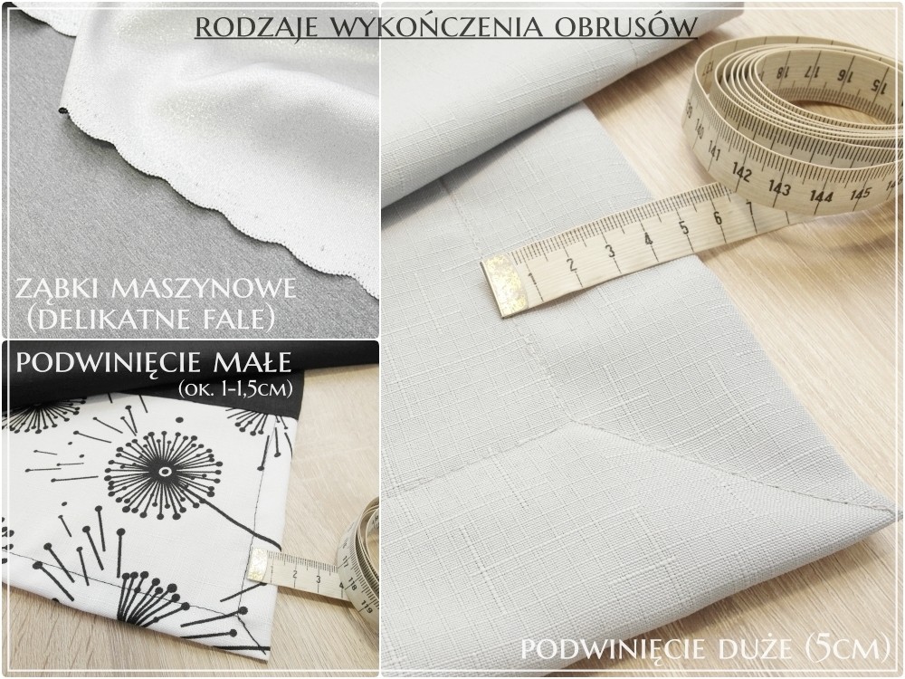 Wykończenie obrusu - obrus w zależności od Państwa upodobania możemy wykończyć na różne sposoby: