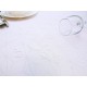 Elegancki obrus z delikatnym wzorem i pięknym srebrnym wykończeniem.