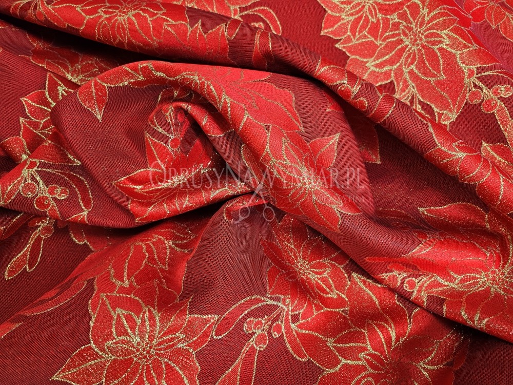 Wzór dużych gwiazd betlejemskich utkanych z delikatnie połyskującej złotej nici nadaje tkaninie wyjątkowej elegancji i blasku. Obrus wykonany jest z wysokiej jakości tkaniny, która łączy trwałość z luksusowym wyglądem.
