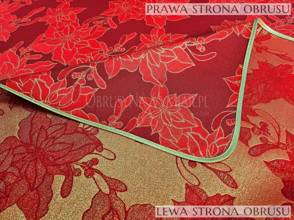 Obrus jest estetycznie wykończony złotą błyszczącą lamówką o szerokości 0,6cm.