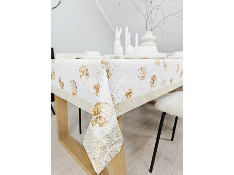 Elegancki obrus wielkanocny Marmurkowe Pisanki. Metalizowana nić dodaje...